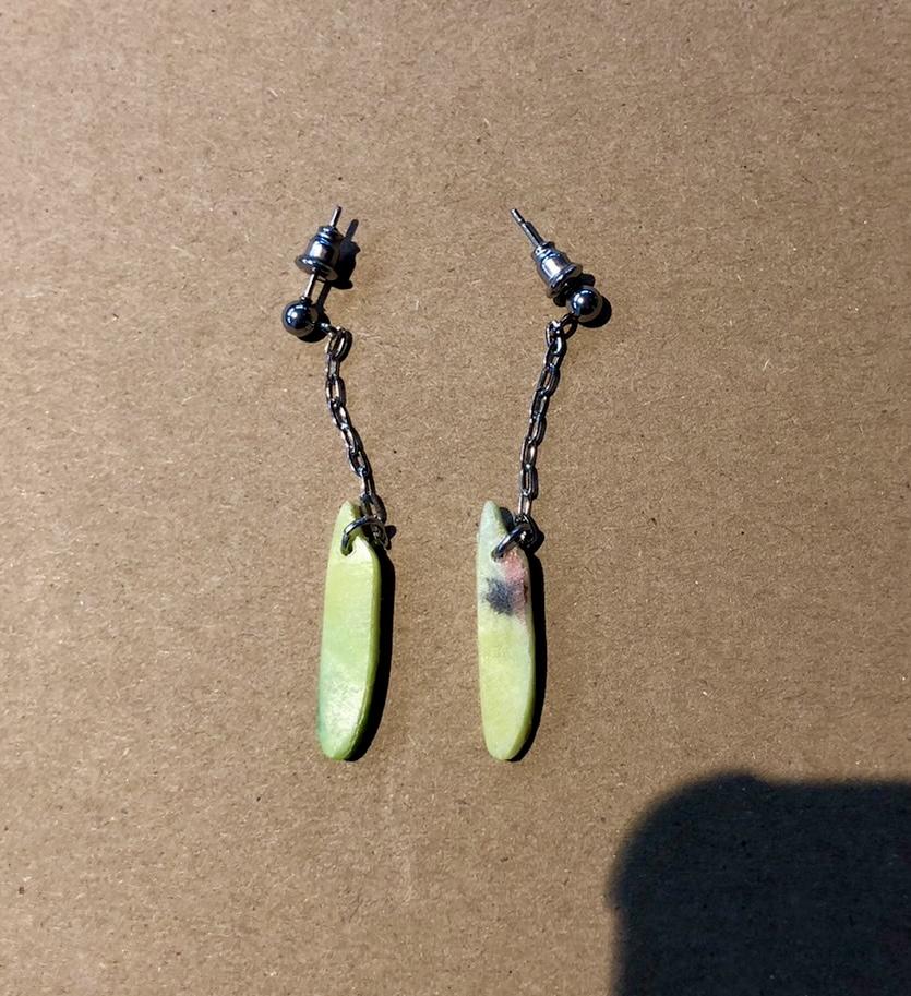 ต่างหูรูปเมล็ดข้าวทำจากพลาสติกรีไซเคิล ตัวเรือนสเตนเลส