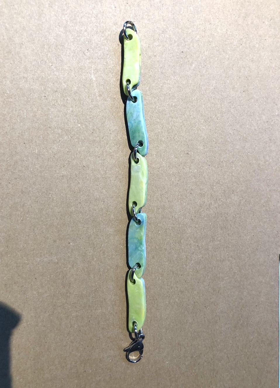 สร้อยข้อมือรูปเมล็ดข้าวทำจากพลาสติกรีไซเคิล