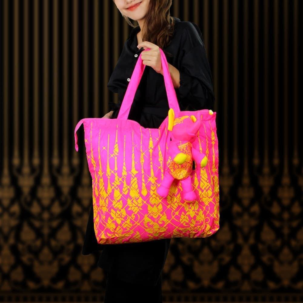 กระเป๋าผ้าสกรีนลายการะเกด ใบใหญ่